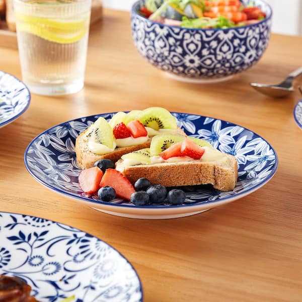 12-Piece Blue Porcelain Dinnerware Set Service for 4-Bowls and Plates Set with Dinner Plates Dessert Plates Cereal Bowls