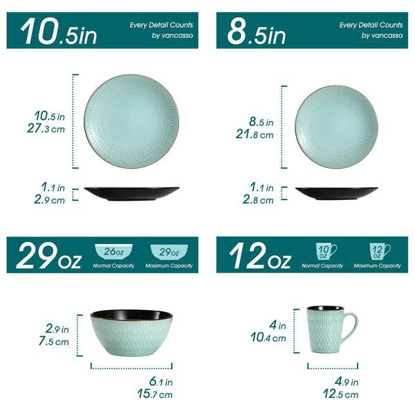 16-Piece Green Stoneware Dinnerware Set Service for 4 Embossed Pattern Tableware Bowls Plates and Mugs Dining Set