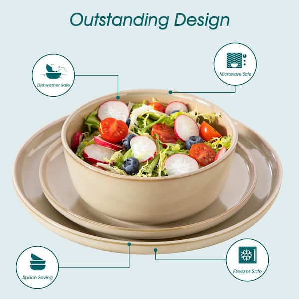 18-Piece Brown Stoneware Dinnerware Set (Service for 6) Dining Set with Dinner Plates Dessert Plates and Cereal Bowls
