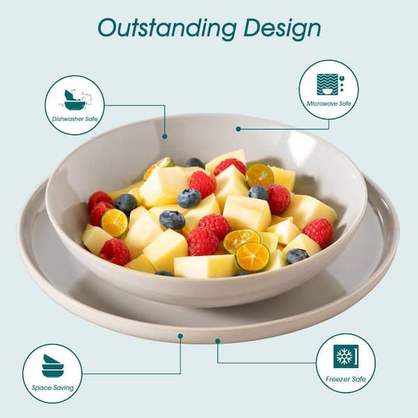 24-Piece Gray Stoneware Dinnerware Set Service for 6 Dishware Dishes Set Tableware with Plates and Bowls
