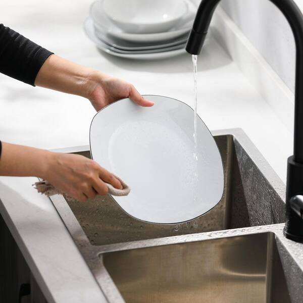 24-Piece Gray-White Porcelain Dinnerware Set Service for 6 Dining Set Black Rim Dishware Bowls and Plates Set