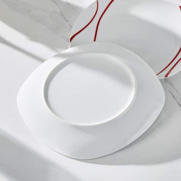 24-Piece White Porcelain Dinnerware Set (Service for 6) Red Stripes Bowls and Plates Set Tableware Dishware Set