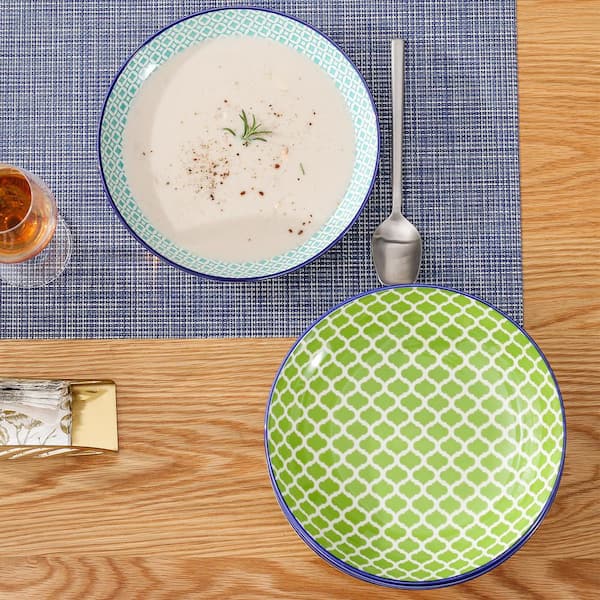 30 fl. oz. Red Blue Green Turquoise Porcelain Soup Plate Pasta Bowl Soup Bowl Salad Bowl Set of 4