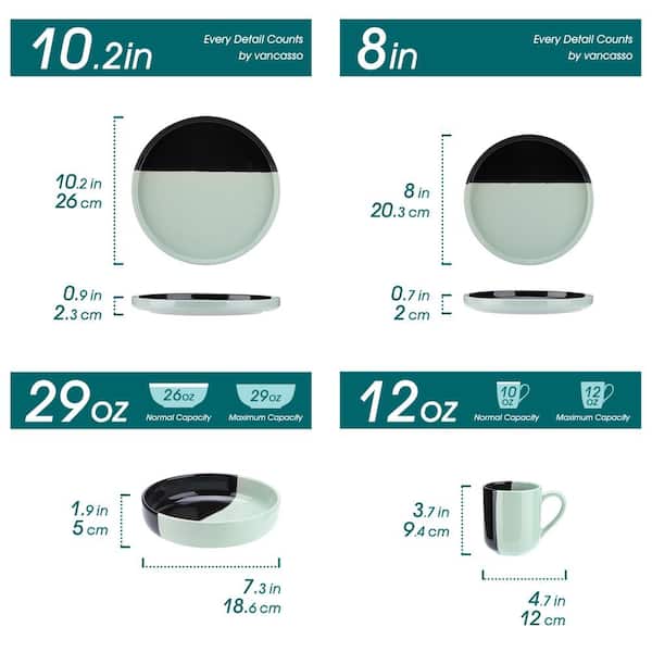 Dipped Glaze 16-Piece Black Green Stoneware Dinnerware Set Plates Bowls Set Service for 4