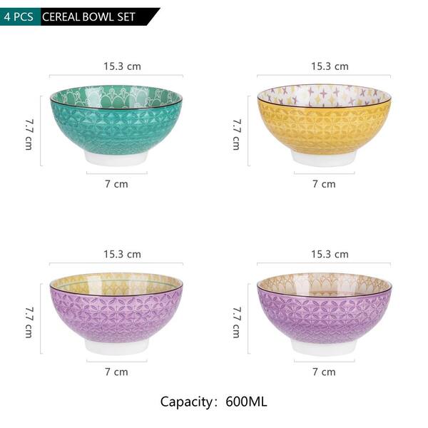 Series Tulip 4-Pieces Dinnerware Sets Cereal Bowl Porcelain Vintage Multi-colored Set Salad (Service for 4)