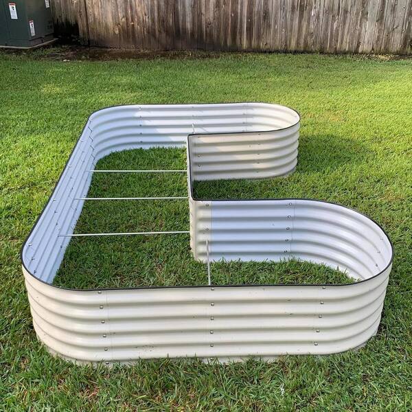 17 in. Tall U-Shape Raised Garden Bed Metal Planter Box for Vegetables Flowers Ground Jumbo Size Olive Green