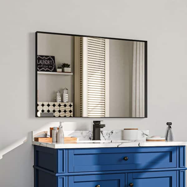 24 in. W x 36 in. H Rectangular Aluminum Framed Wall Bathroom Vanity Mirror in Black