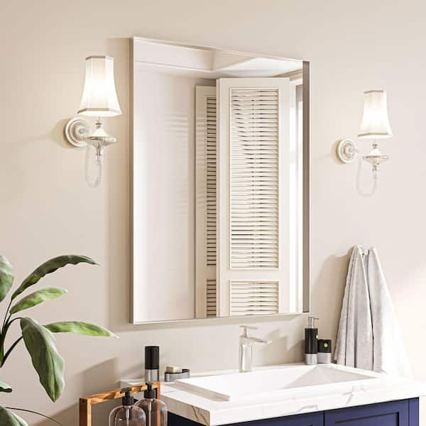 28 in. W x 36 in. H Rectangular Aluminum Framed Wall Bathroom Vanity Mirror in Brushed Sliver
