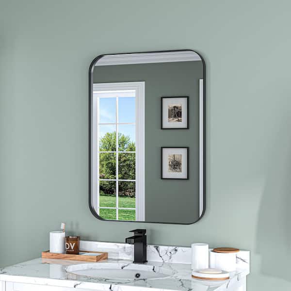 30 in. W x 22 in. H Rectangular Aluminum Framed Wall Bathroom Vanity Mirror in Black