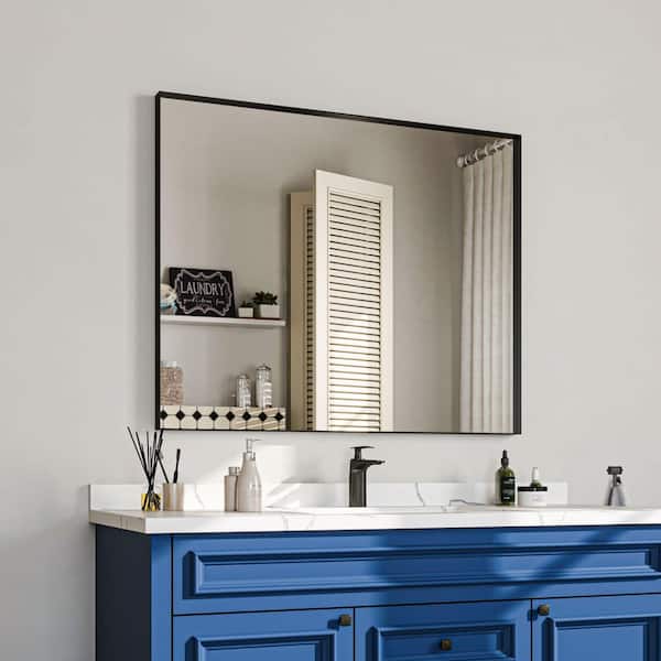 32 in. W x 40 in. H Rectangular Aluminum Framed Wall Bathroom Vanity Mirror in Black