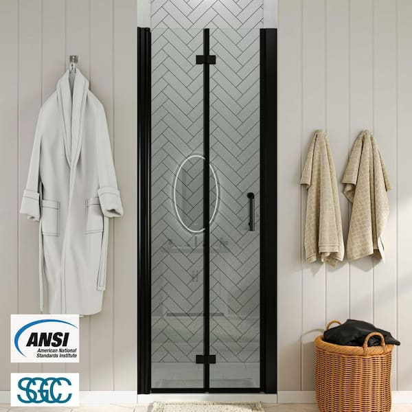 32 to 33-1/4 in. W x 72 in. H Bi-Fold Frameless Shower Doors in Black with Clear Glass