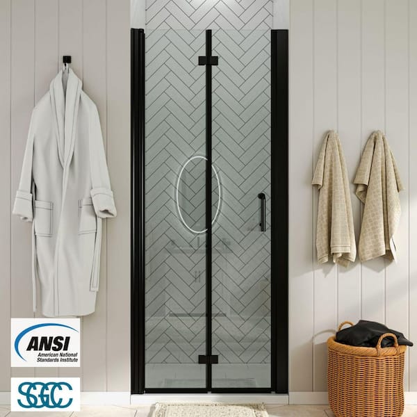 36 to 37-1/4 in. W x 72 in. H Bi-Fold Frameless Shower Doors in Black with Clear Glass