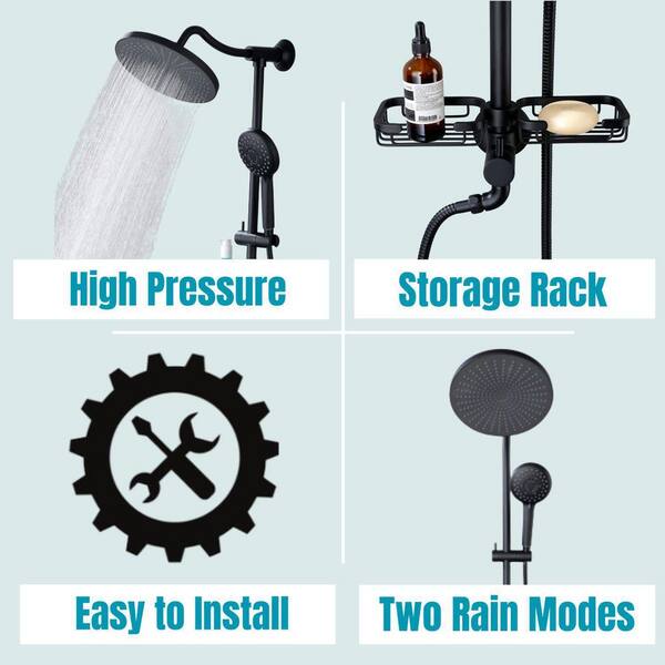 4-Spray Patterns Dual Shower Head Wall Mounted Fixed andHandheld Shower Head 1.8 GPM in Black