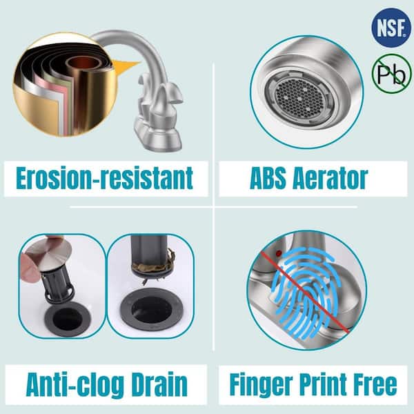 4 in. Centerset 2-Handle Bathroom Faucet with Pop-Up Drain and Supply Hoses in Brushed Nickel