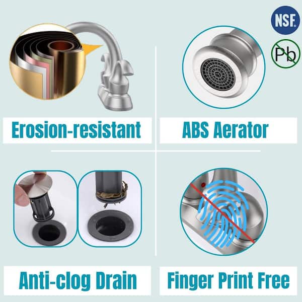 4 in. Centerset Double Handle Bathroom Faucet with Pop-Up Drain and Supply Hoses in Brushed Nickel