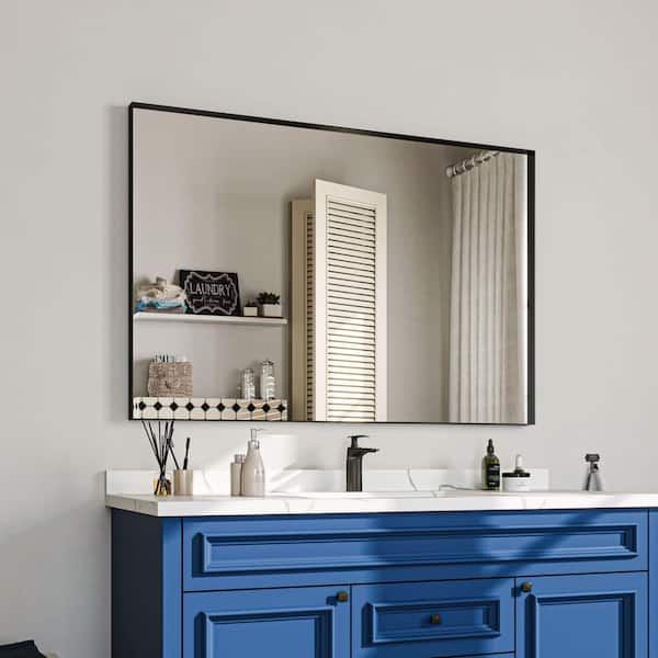 48 in. W x 32 in. H Rectangular Aluminum Framed Wall Bathroom Vanity Mirror in Black