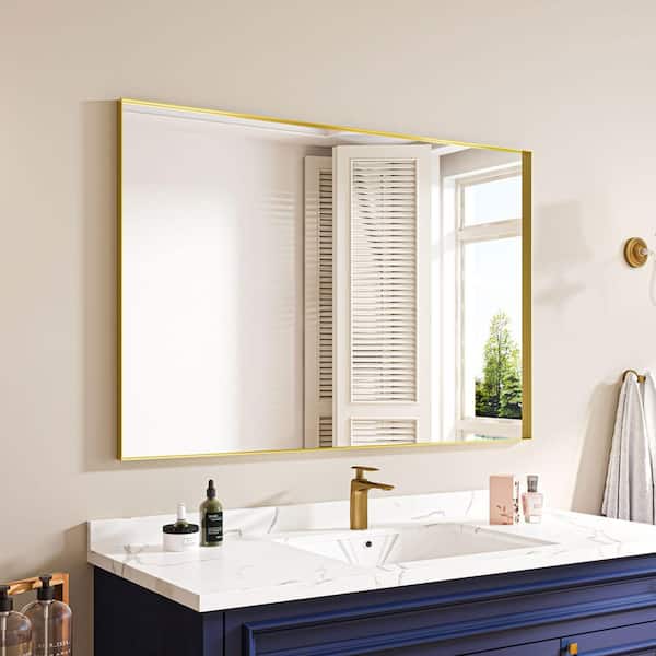 48 in. W x 32 in. H Rectangular Aluminum Framed Wall Bathroom Vanity Mirror in Brushed Gold