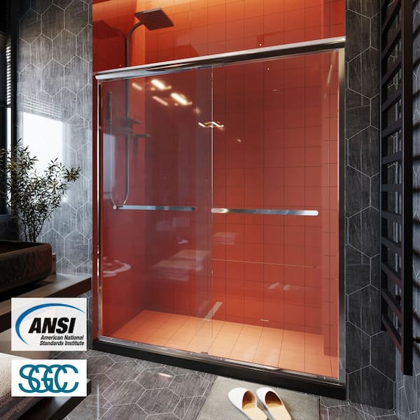 56 - 60 in. W x 72 in. H Double Sliding Framed Shower Door in Chrome with Double Handle