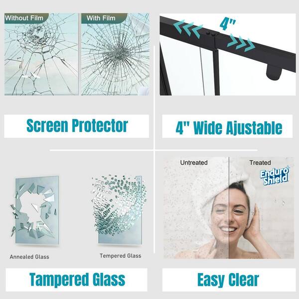 56 in. to 60 in. W x 71 in. H Framed Pivot Shower Door in Black with Clear Glass