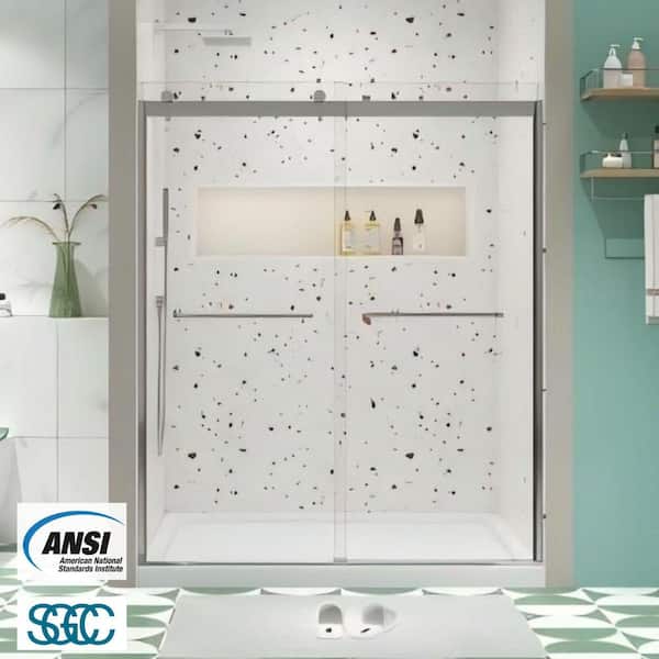 58 to 60 in. W x 76 in. H Sliding Framed Shower Door in Chrome with Clear Glass
