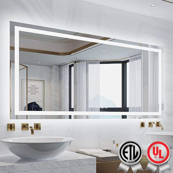 78 in. W x 36 in. H Rectangular Frameless Wall Bathroom Vanity Mirror with Backlit and Front Light