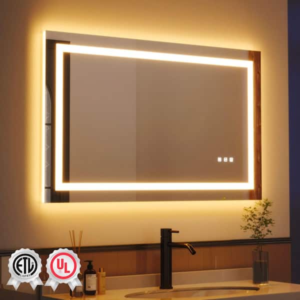 Backlit and Front Light 40 in. W x 24 in. H Rectangular Frameless Wall Bathroom Vanity Mirror