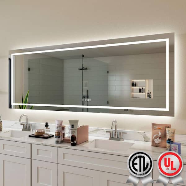 Super Bright 84 in. W x 32 in. H Rectangular Frameless Anti-Fog LED Wall Bathroom Vanity Mirror with Front Light