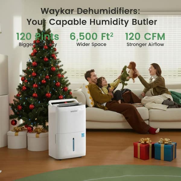120 pt. 6,000 sq. ft. Energy Star Dehumidifier with Bucket for Wetroom, Basement and Garage with Auto Defrost in White