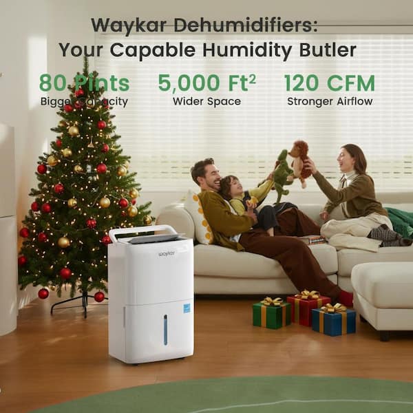 80 pt. 5,000 sq. ft. Energy Star Dehumidifier with Bucket for Wetroom, Basement and Garage with Auto Defrost in White