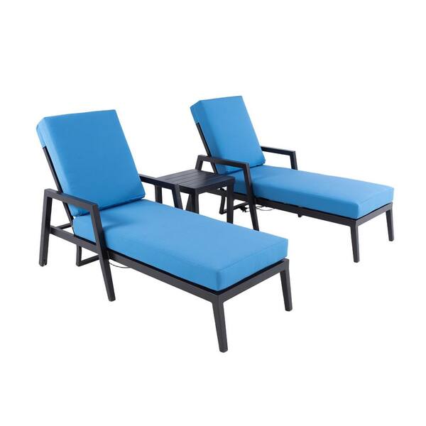 3-Piece Aluminum Outdoor Patio Furniture Chaise Lounge Set Pneumatic Adjustable Backrest with Blue Sunbrella Cushion