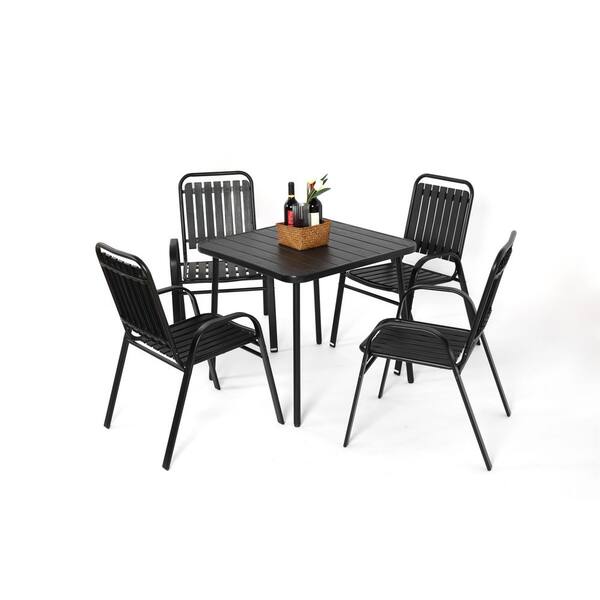 Black 5-Pieces Dining Set with 4 Plastic chair and Steel Table for Garden