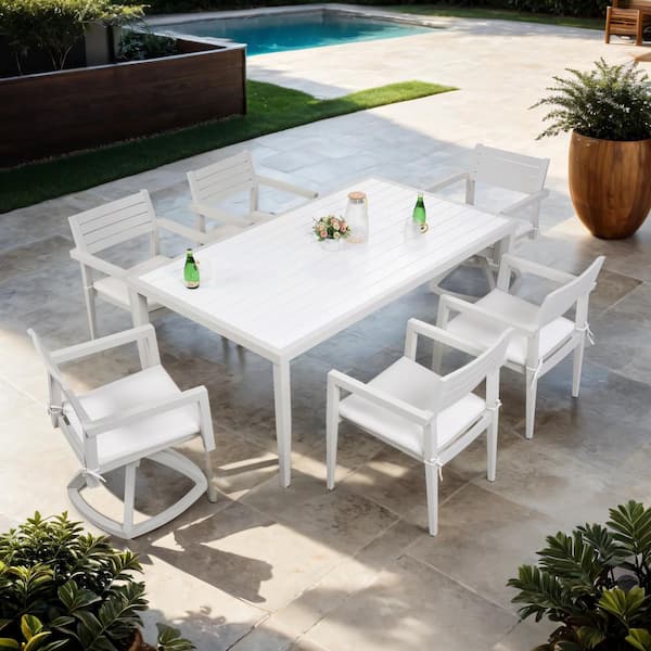 Matte White and Grayish Outdoor 40 in. x 70 in. Rectangle Patio Dining Table with Umbrella Hole and Tapered Feet