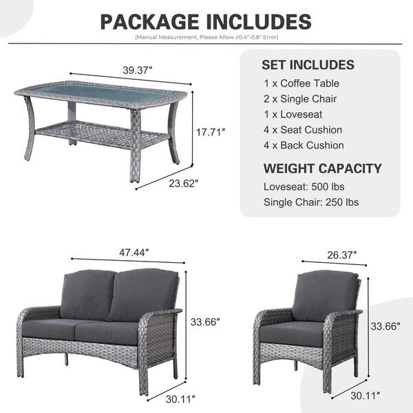Hyacinth Haven Gray 6-Piece Wicker Patio Outdoor Conversation Seating Set with a Coffee Table and Black Cushions