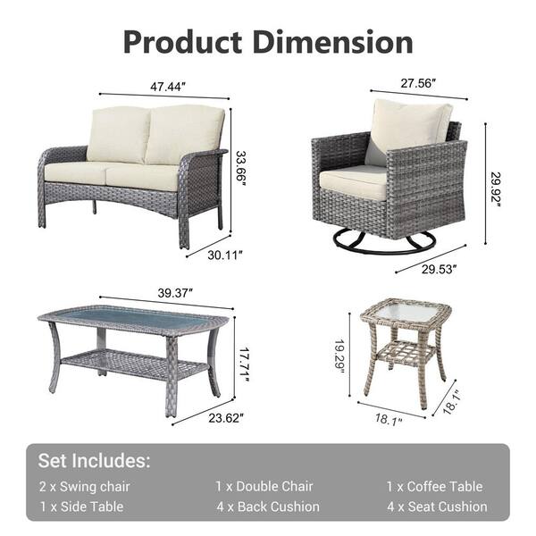Rocking Hyacinth Gray 4-Piece Wicker Patio Outdoor Conversation Seating Set with a Coffee Table and Beige Cushions
