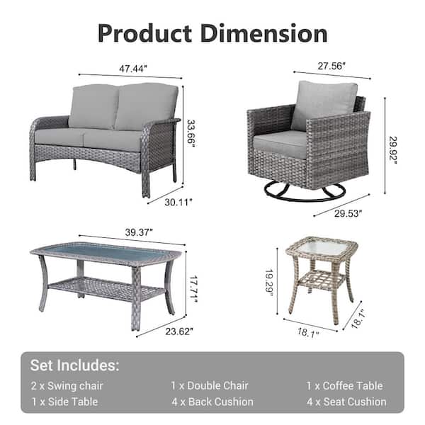 • Includes 2 swivel rocking chairs, 2 table and 1 love seat