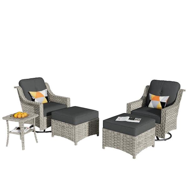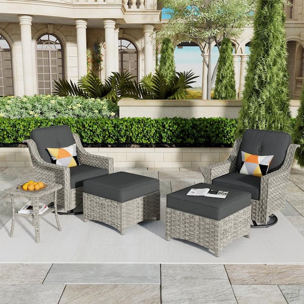 Tulip E 5-Piece Wicker Swivel Outdoor Rocking Chairs Patio Conversation Set with Black Cushions