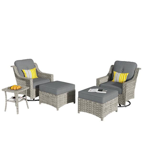 Tulip E 5-Piece Wicker Swivel Outdoor Rocking Chairs Patio Conversation Set with Dark Gray Cushions
