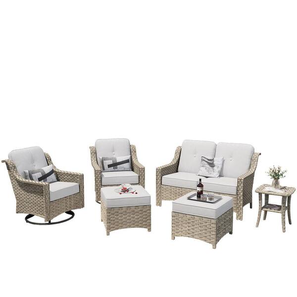 Tulip L Gray 6-Piece Wicker Patio Outdoor Conversation Sofa Set with Swivel Rocking Chairs and Light Gray Cushions