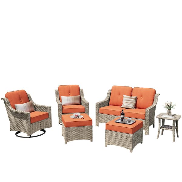 Tulip L Gray 6-Piece Wicker Patio Outdoor Conversation Sofa Set with Swivel Rocking Chairs and Red Cushions