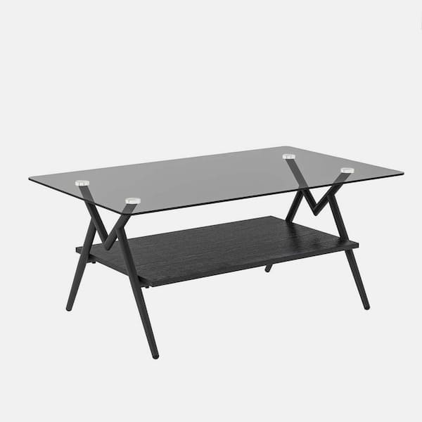 38.6 in. Gray Rectangle Tempered Glass Top Coffee Table