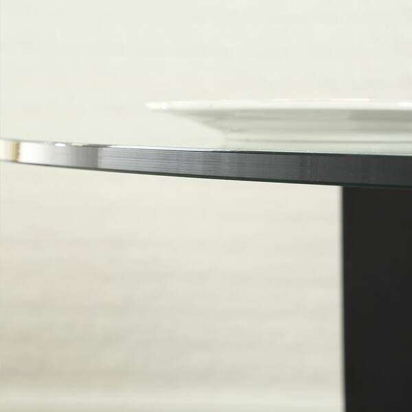 42 in. Round Shape Black Clear Tempered Glass Top Dining with Solid Wood Natural Oak Table (Seats-4)