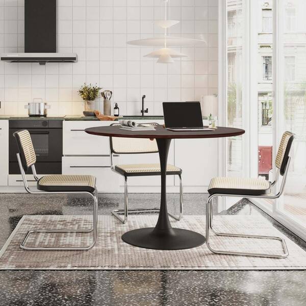 Brown Oak Wood 47.24 in. Pedestal Dining Table Seats 4