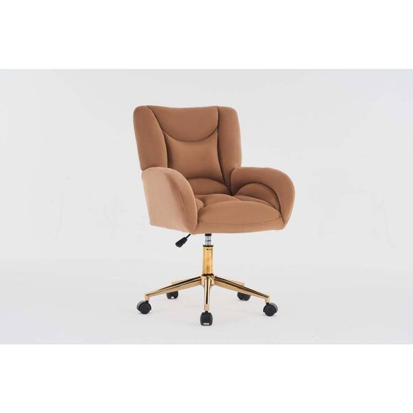 Coffee Velvet Fabric 360 Swivel Home Office Chair With Gold Metal Base and Universal Wheels