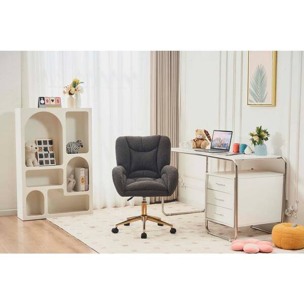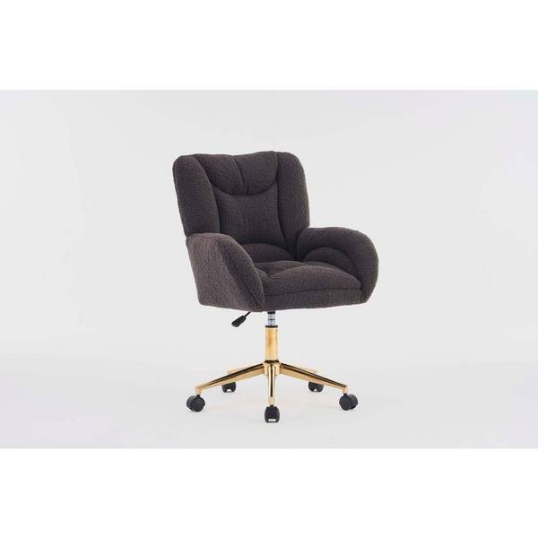 Dark Gray Teddy Fabric 360 Swivel Home Office Chair With Gold Metal Base and Universal Wheels