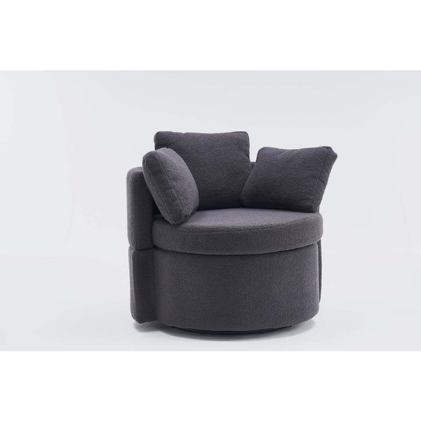 Dark Gray Teddy Fabric Swivel and Storage Barrel Chair with Back Cushion