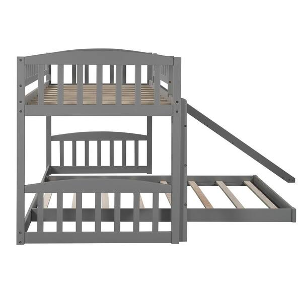 Gray Twin Over Twin Bunk Bed with Slide and Ladder