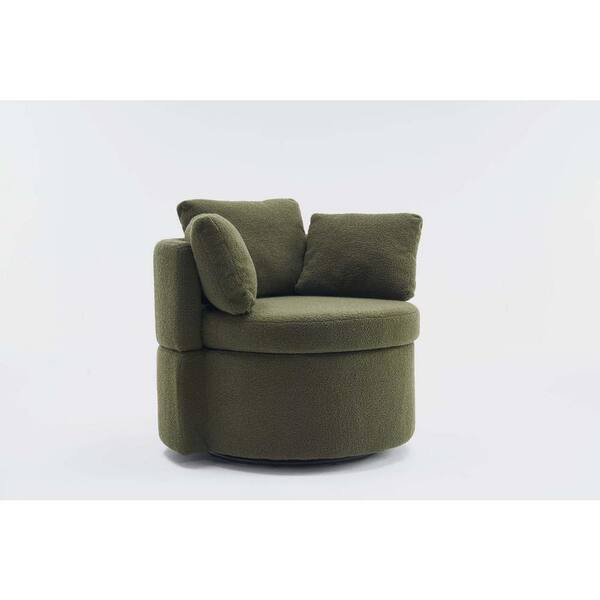 Green Teddy Fabric Swivel and Storage Barrel Chair with Back Cushion
