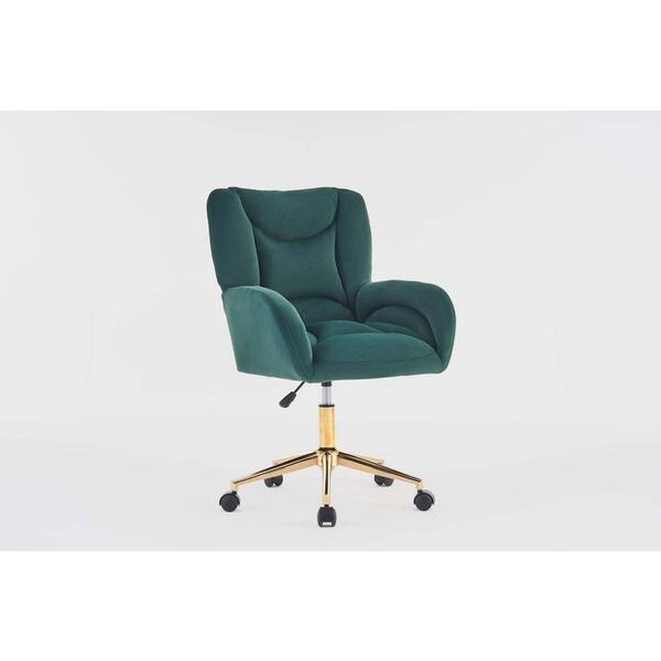 Green Velvet Fabric 360 Swivel Home Office Chair With Gold Metal Base and Universal Wheels