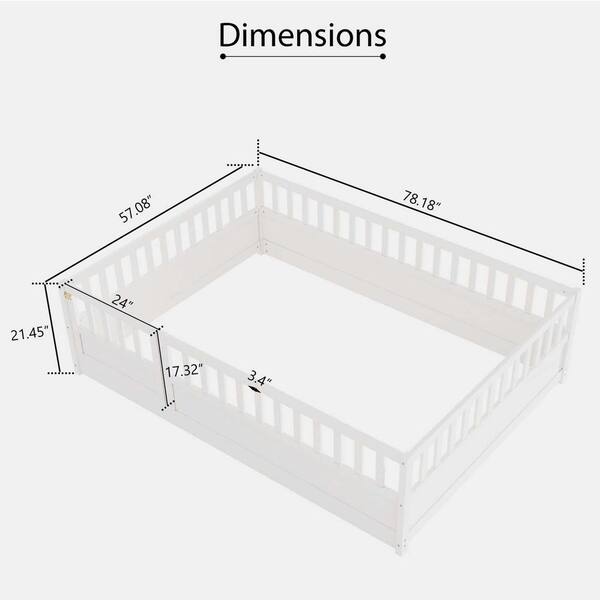 White Wood Frame Full Size Platform Bed with Super High Security Barrier, Door