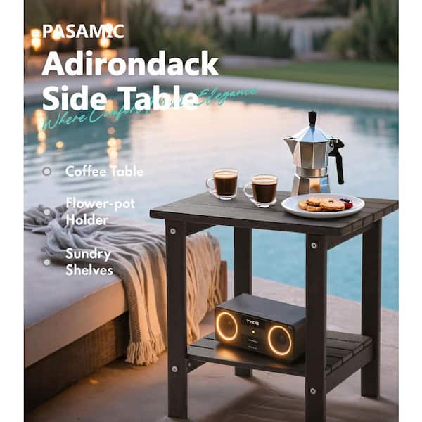 17 in. Brown 2-Tier Rectangular HDPE Outdoor Side Table